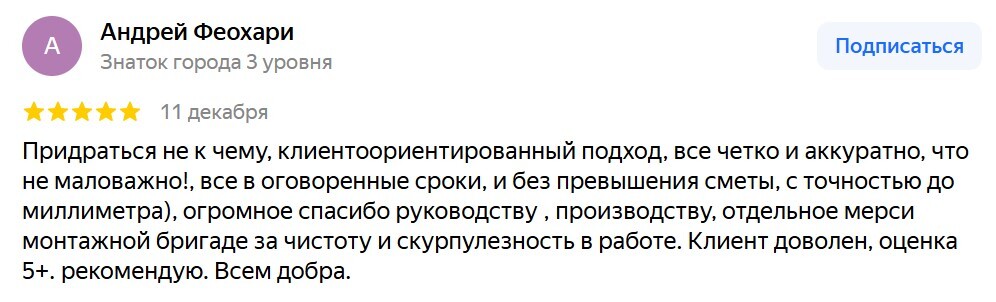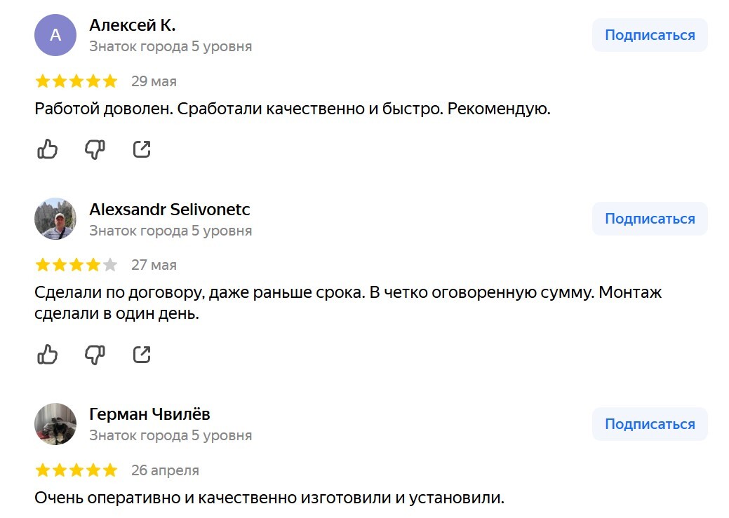 Вам не придется искать и контролировать подрядчиков, потому что выполняем работу от замера до установки "под ключ" и отчитываемся на каждом из этапов.