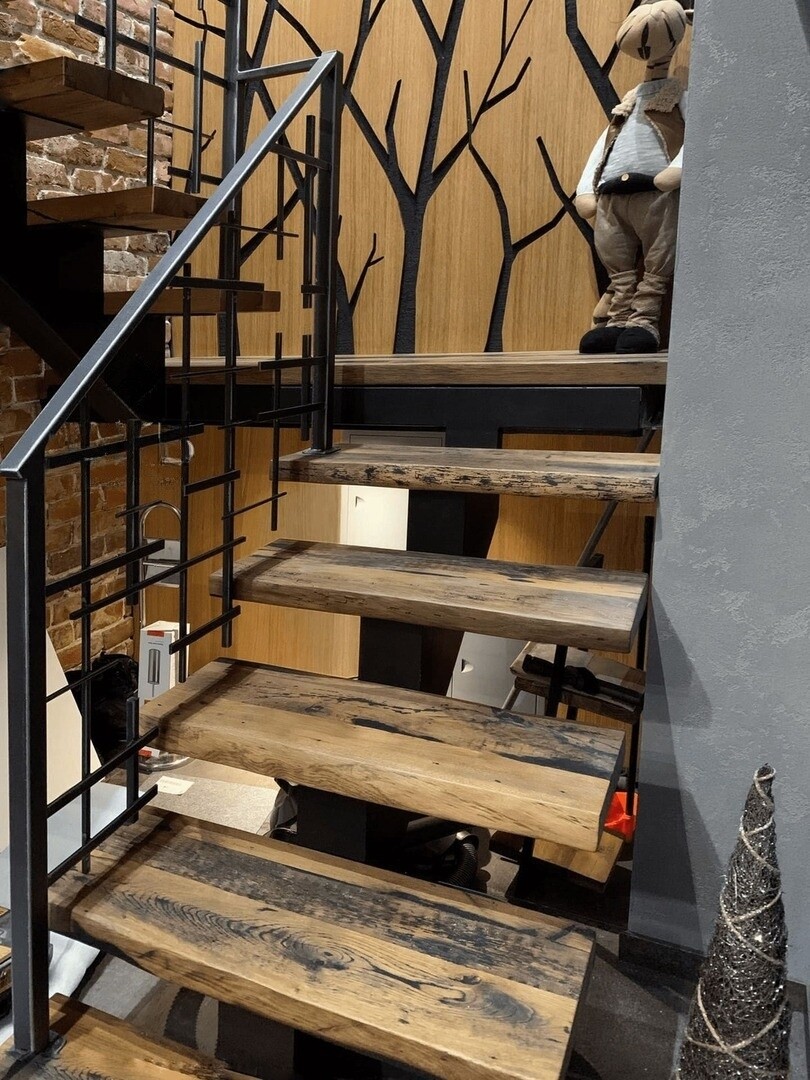 Ступени выполнены из амбарного дуба толщиной 60мм